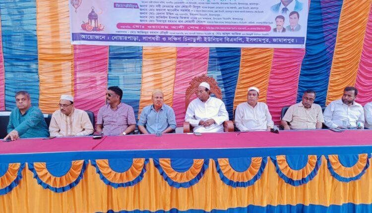 রিপোর্ট : মোঃ সোহাগ মিয়া: ২০ মার্চ ২০২৫ইং বৃহস্পতিবার জামালপুর জেলার ইসলামপুরে নোয়ারপাড়া ইউনিয়নে আলোচনা সভা, ইফতার ও দোয়া মাহফিল অনুষ্ঠিত হয়।নোয়ারপারা ইউনিয়ন বিএনপি’র সাবেক সভাপতি ও উপজেলা বিএনপি জানো পুনর্বাসন বিষয়ক সম্পাদক ওয়ারেস আলী সভাপতিত্বে উক্ত অনুষ্ঠানে প্রধান অতিথি হিসেবে উপস্থিত ছিলেন সাবেক মন্ত্রী পরিষদ সচিব ও বিএনপি চেয়ারপার্সন বেগম খালেদা জিয়ার উপদেষ্টা জনাব এ এস এম আব্দুল হালিম।