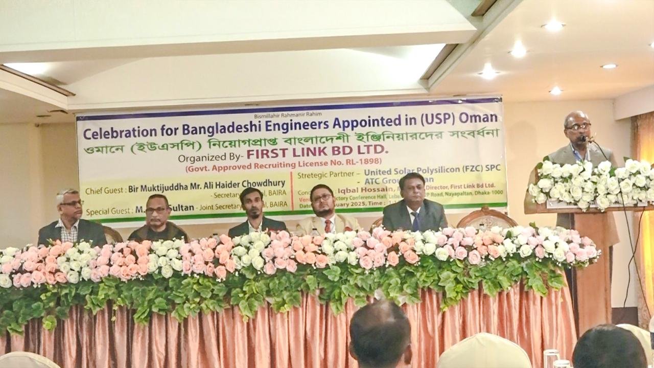 উল্লেখ্য ফাস্ট লিঙ্ক বিডি লিমিটেড যার লাইসেন্স নং-আর এল – ১৮৯৮ যার মাধ্যমে এবং বাংলাদেশী ইঞ্জিনিয়ারদের নিয়োগপ্রাপ্তি ও ভিসা সংক্রান্ত বিষয়ে এটিসি গ্রুপ ওমান এর চেয়ারম্যান আশ্রাফ উদ্দিন রনি সিআইপি’র সার্বিক সহযোগীতায় শুধুমাত্র সার্ভিস চার্জ প্রদান করে এক লক্ষ 20 হাজার টাকা বেতনে ৩১জন ইঞ্জিনিয়ার ওমানে নিয়োগপ্রাপ্ত হন। সার্ভিস চার্জ ব্যতীত অন্য কোন খরচ প্রদান করতে হয়নি তাদের । সবশেষে মধ্যাহ্নভোজ গ্রহণের মাধ্যমে অনুষ্ঠান সমাপ্ত হয়।