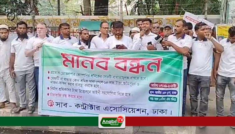 মানববন্ধনে উপস্থিত ছিলেন মোঃ আব্দুর রহিম, সভাপতি, সাব-কন্ট্রাক্টার এসোসিয়েশন, ঢাকা,মোঃ ফারুক, সাধারণ সম্পাদক, সাব-কন্ট্রাক্টার এসোসিয়েশন, ঢাকা, মোঃ মোশারফ হোসেন সিনিয়র সহ-সভাপতি সাব-কন্ট্রাক্টার এসোসিয়েশন, ঢাকা, মোঃ মঞ্জুরুল ইসলাম সিনিয়র সহ-সভাপতি সাব-কন্ট্রাক্টার এসোসিয়েশন, ঢাকা। বক্তারা মানববন্ধনে বিভিন্ন দাবি তুলে ধরে।